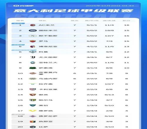 意甲积分榜丨登顶登顶